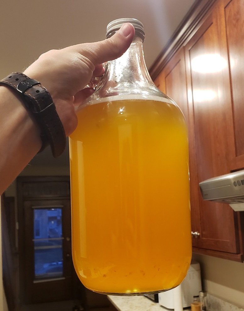 I generally tried to harvest every 3 days, but this schedule was not very tight. All harvests were after at least 3 days, but some extended to 5 days. The flavor changed noticeably in this time and definitely had more body after 5 days, but the sugar content was clearly lower. It is much easier to pull a half gallon at a time so I maintain the same volume every time.